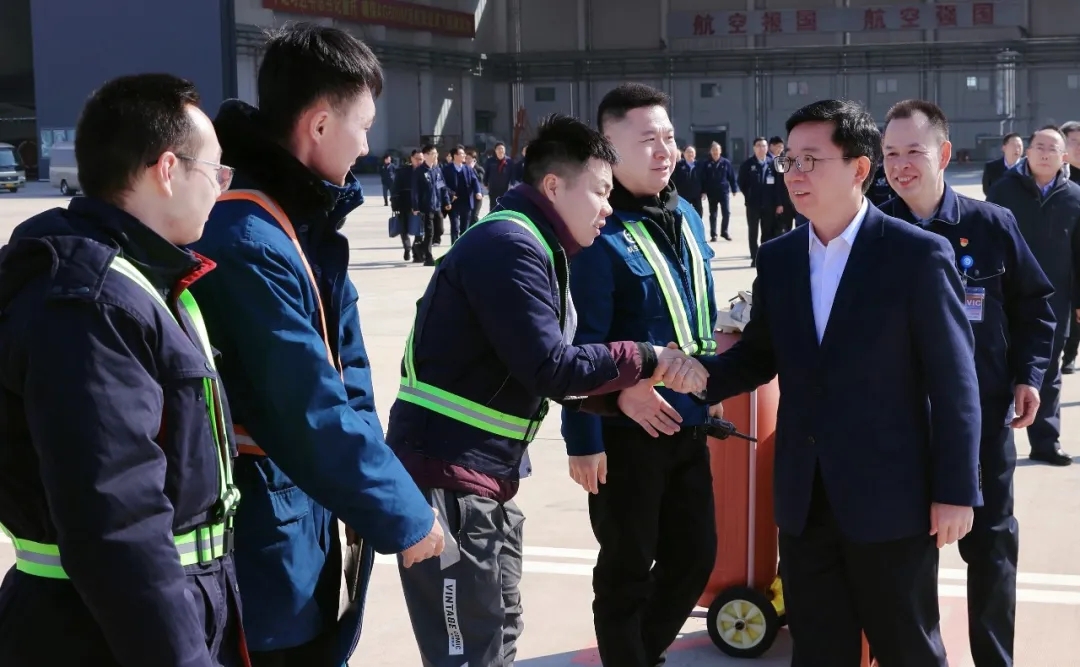 2月3—4日,农历大年初六、初七,中航工业党组副书记、总经理魏应彪一行前往中航工业驻西安地区相关单位,调研重点项目和型号的研制、生产、试飞情况,并先后前往中航西飞、一飞院、试飞中心和民机试飞中心,向假期中值守一线奋战的科研人员和干部职工致以诚挚的问候和美好的祝福。